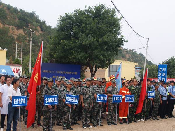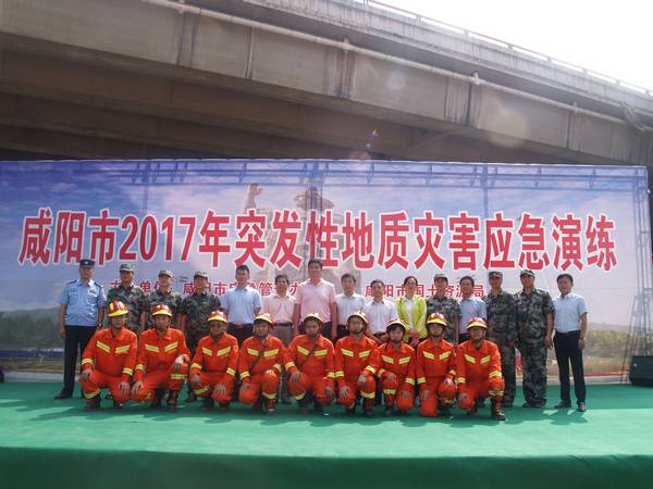 8月1日,咸陽市應急管理辦公室、咸陽市國土資源局、彬縣人民政府聯合在彬縣太峪鎮景村舉行咸陽市2017年突發性地質災害應急演練,咸陽支隊作為重要參與單位受邀承擔了現場災情排查、監測任務。省國土資源廳領導到場指導,咸陽市其他12個縣區國土資源局代表前來觀摩學習。