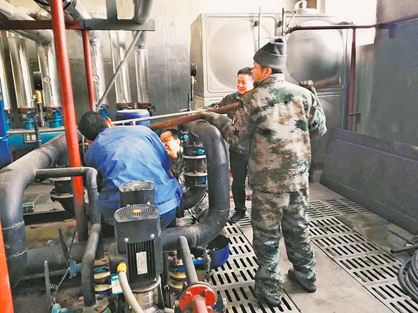 1月12日早上8時(shí),第三地質(zhì)隊(duì)換熱站工作人員在巡查過程中發(fā)現(xiàn)上述問題,及時(shí)向科室領(lǐng)導(dǎo)匯報(bào)。經(jīng)過現(xiàn)場(chǎng)查看分析,大家及時(shí)制訂了維修方案,抓緊時(shí)間進(jìn)行搶修。一聲令下,所有人分頭行動(dòng):物業(yè)中心鄭澤凌負(fù)責(zé)外購軸承配件,王永利副主任帶領(lǐng)水電組王興、孟憲發(fā)及李軍會(huì)拆卸1#循環(huán)泵電機(jī)。雖然室內(nèi)空間狹小,但是他們依然克服各種困難,手抬肩扛,及時(shí)把電機(jī)拆卸下來。由于軸承抱死,專業(yè)工具無法卸下,王永利迅速聯(lián)系維修點(diǎn)及運(yùn)輸車輛,同鄭澤凌、王興把電機(jī)軸體運(yùn)送到縣城北門進(jìn)行切割。運(yùn)回時(shí)已是中午時(shí)分,大家發(fā)揚(yáng)一不怕苦,二不怕累的精神,來不及休息,及時(shí)修復(fù)了1#循環(huán)泵電機(jī)。安裝完成啟動(dòng)后,又連續(xù)作戰(zhàn),更換了2#循環(huán)泵電機(jī)軸承并一次試機(jī)成功。