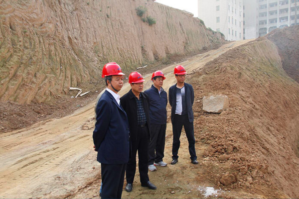 潘發明一行來到地質科技綜合樓及8號職工住宅樓基礎施工現場,深入了解了抗拔樁施工區域鉆泥清理、基礎樁檢測以及樓房樁基礎施工工程進度及安全生產情況。潘發明要求,要依據科學的管理,在天氣條件允許的情況下,加快施工進度,提高工作效率,保質保量保進度地推進工程建設。同時要抓好施工細節的安全管理,切實做好安全生產工作。