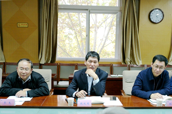 11月16日,總公司董事長、黨委書記趙廷周、總經理劉建勤、總工程師齊文一行赴中國地調局西安地調中心對接座談。西安地調中心主任李文淵、黨委書記杜玉良、主任助理張茂省對趙廷周一行的到來表示熱烈歡迎,雙方共同觀看了總公司宣傳片和漢中玉宣傳片,并進行了親切交流座談。