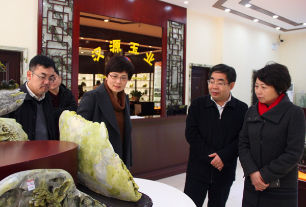 鐘順虎先后參觀了公司玉雕廠和玉石展廳,在參觀過(guò)程中聽取了何淑萍關(guān)于公司發(fā)展規(guī)劃、企業(yè)建設(shè)等方面的工作匯報(bào)。鐘順虎強(qiáng)調(diào),企業(yè)要以文化為引領(lǐng),通過(guò)持續(xù)技術(shù)創(chuàng)新、經(jīng)營(yíng)創(chuàng)新、文化創(chuàng)新等方式,探索并延伸企業(yè)文化內(nèi)涵,抓質(zhì)量文化和品牌文化等一系列正向企業(yè)文化,為企業(yè)快速發(fā)展提供強(qiáng)大的凝聚力和向心力。同時(shí)要求漢中市委宣傳部和南鄭縣委宣傳部將“漢中玉”宣傳工作納入下年度工作重點(diǎn),力爭(zhēng)將“漢中玉”打造成為有地域特色的文化產(chǎn)業(yè)。