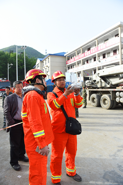航測支隊負責人董乾坤組織隊員在災害現場采用固定翼無人機(天狼星)和四旋翼無人機,用一個小時對災害區域進行了4個架次的低空作業,快速獲取災區高分辨率影像資料和視頻資料,兩臺電腦現場快速圖形處理,3個小時完成災區正射影像圖制作、三維數字化模型制作,及時為救災提供基礎測繪數據,為救援指揮部現場決策提供直觀、可靠依據,為救災工作提供技術支撐服務。
