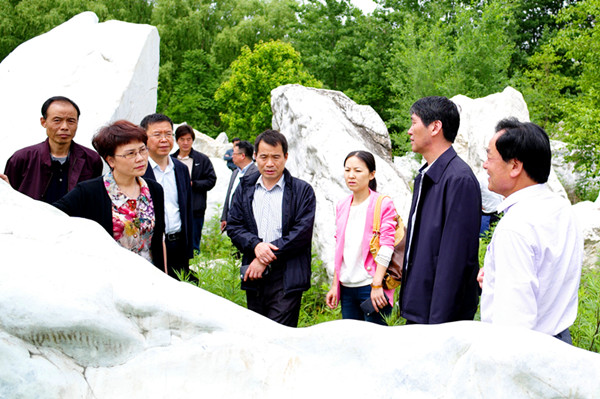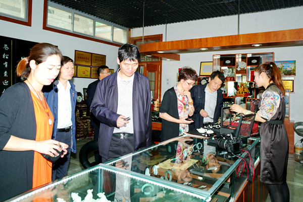 趙廷周一行深入焦岱鎮西安藍田焦岱石材開發公司,現場觀摩了藍田玉的生產加工過程。赴鼎湖延壽宮石藝園,參觀了西安市藍田玉文化博物館,了解了藍田玉的歷史文化和滄桑變遷。隨后,深入輞川鎮八畝地、核桃溝玉礦點,現場考察了藍田玉玉石資源的露頭情況。