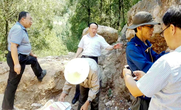 齊文一行冒著酷暑到達項目工作區,首先聽取了該隊總工程師和項目組的工作匯報,檢查了項目工作記錄、工作圖件等資料,詳細詢問了項目的工作進展情況,并現場察看了礦脈的產狀、露頭和走向。齊文說,在寶雞地區發現的玉石礦,與我省商洛地區發現的玉石礦類型基本接近,雙方應該有著一定的關聯,這需要技術人員在工作中不斷地進行驗證。齊文對項目實現找礦突破寄予厚望,并勉勵地質技術人員開拓思路,扎實工作,善于研究和總結,努力出大成果。