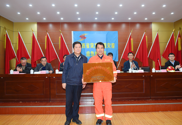 趙廷周在講話中強調,在黨的十九大即將召開之際,今天,省應急辦代表省政府為“陜西省突發地質災害應急排查隊”正式授牌,標志著這支隊伍正式納入全省應急救援管理體系,這是省委省政府和省應急委、省國土資源廳對陜西地礦集團最大的信任與支持。大家要堅守責任,勇于擔當,在全省防災減災救災工作中,爭取更大作為和更大貢獻。