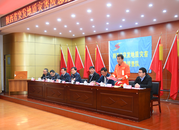 10月17日上午,陜西省應急辦在陜西地礦集團舉行陜西省突發地質災害應急排查隊授牌儀式,陜西省應急辦主任白凡為陜西省突發地質災害應急排查隊授牌并作重要講話;陜西省國土資源廳總規劃師湯鵬超出席并講話;陜西地礦集團黨委書記、董事長趙廷周出席并講話;省應急辦應急處處長曹國瑞主持儀式并宣讀陜西省應急委員會文件;地礦集團黨委副書記、總經理劉建勤出席,副總經理、陜西省突發地質災害應急排查隊隊長馬貴鎖作表態發言。