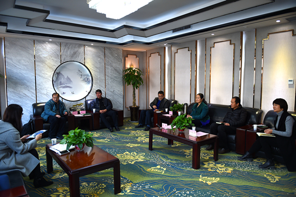 12月12日,中國國土資源報社社長陳國棟一行來地礦集團公司調研交流工作。集團公司黨委書記、董事長趙廷周,黨委副書記、紀委書記張軍與陳國棟社長一行進行座談。