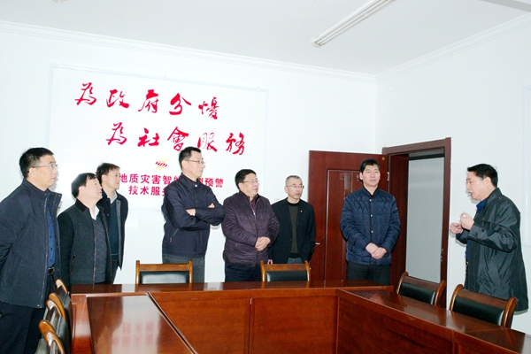 2月13日,地礦集團公司黨委書記、董事長趙廷周,黨委副書記、總經理劉建勤,黨委委員、副總經理、工會主席白林科一行深入物化探隊“西安地質災害智能監測預警服務中心”進行工作調研。