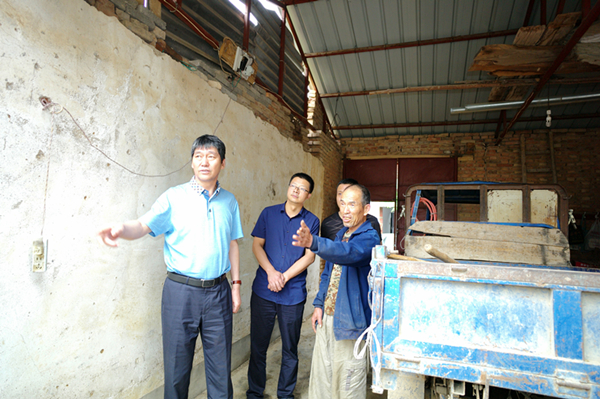 幫扶對象王忠錄家,目前主要從事肉牛養殖業和核桃種植業,女兒已經出嫁,家里僅剩老兩口2人,家庭收入穩定。正值汛期,王忠錄家的土坯墻存在嚴重的安全隱患,趙廷周和牛少逢提醒王忠錄,一定要盡快處置,防止土坯墻傾覆釀成事故。