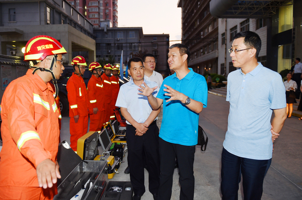 7月25日20時,國家應急管理部地震與地災應急司副司長胡杰一行,在陜西省國土資源廳黨組成員、副廳長盧勇和地質環境處處長王雁林等陪同下,前來陜西地礦集團檢查指導工作。