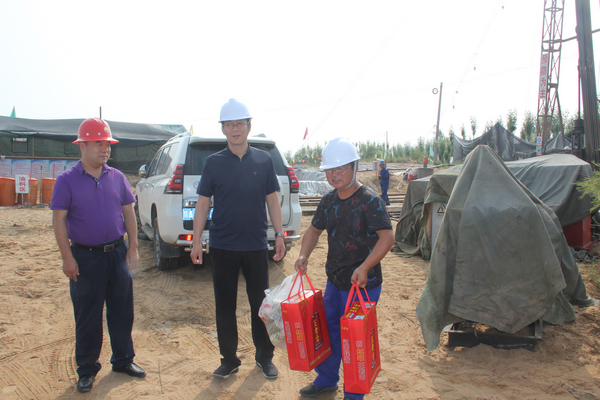 8月6日,地礦集團公司黨委副書記、總經理劉建勤深入陜北檢查指導工作,看望慰問高溫下奮戰在生產一線的陜西省地質災害應急排查隊榆林支隊隊員、西安地勘院榆橫礦區西紅墩項目部及井田鉆探機臺員工,送上慰問品和慰問金,帶去公司的濃濃關愛。集團公司有關部門、單位負責人陪同檢查慰問。