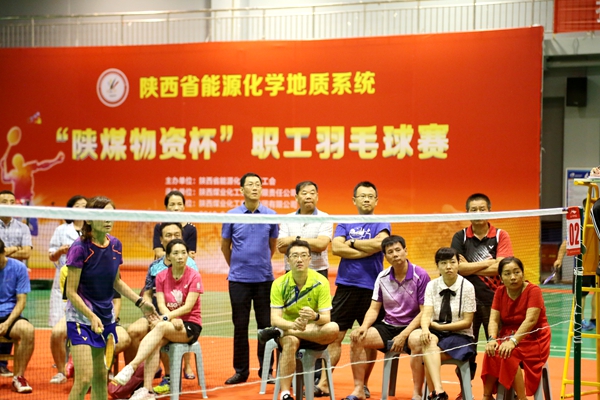趙廷周劉建勤白林科觀看省能源化學地質系統2018年“陜煤物資杯”職工羽毛球賽并為集團公司代表隊加油助威