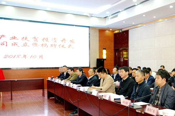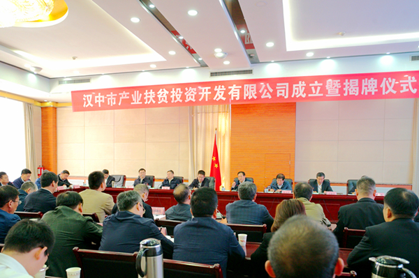 10月10日,漢中市產業扶貧投資開發有限公司成立暨揭牌儀式在漢中市政府舉行。漢中市委書記王建軍,省扶貧辦副主任彭安季,省國資系統助力脫貧攻堅漢中合力團團長單位負責人、省地電集團黨委書記、董事長劉斌出席并講話。省國資委副巡視員杜芳軍,地礦集團公司黨委書記、董事長趙廷周出席。漢中市委副書記權儉致辭。副市長黨振清主持。地礦集團公司副總經理何淑萍,黨委副書記安增會,省國資系統助力脫貧攻堅漢中合力團其他成員單位有關負責人出席。漢中市投控集團公司董事長張廷澤發言。
