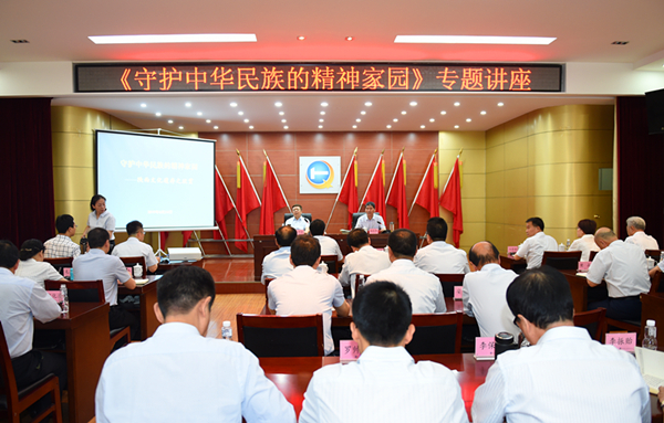 5月24日上午,陜西省咨詢委員會(huì)副主任白阿瑩,應(yīng)邀前來(lái)地礦集團(tuán)公司作《守護(hù)中華民族的精神家園——陜西文化遺存之欣賞》專題文化講座。集團(tuán)公司黨委書記、董事長(zhǎng)趙廷周主持講座。集團(tuán)公司領(lǐng)導(dǎo),總經(jīng)理助理、副總師,所屬各單位主要負(fù)責(zé)人,總部各部門主辦科員以上干部共70余人聆聽(tīng)了講座。