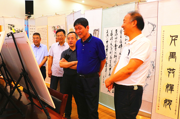 9月6日,地礦集團公司黨委書記、董事長趙廷周參觀集團公司慶祝新中國成立七十周年離退休職工書畫攝影展,黨委副書記安增會一同參觀。有關單位、部門負責人陪同。
