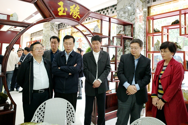 白阿瑩一行先后深入漢源公司玉石工藝廠、直營展廳,進行了實地調研。隨后召開工作匯報會,聽取了總公司有關“漢中玉”產業發展的工作匯報。趙廷周作了總體匯報。何淑萍詳細匯報了 “漢中玉”產業發展情況,重點匯報了需要政府部門協助解決的突出問題。