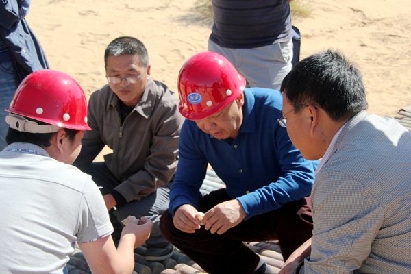 通過勘查,初步查明了勘查區(qū)地質(zhì)構(gòu)造特征、區(qū)內(nèi)的地層層序和時代、煤層的分布特點和含煤狀況以及水文地質(zhì)條件等,為下一步井田的開發(fā)建設(shè)提供了詳實準(zhǔn)確的地質(zhì)依據(jù)。圖為西安地勘院領(lǐng)導(dǎo)在工區(qū)檢查指導(dǎo)工作。