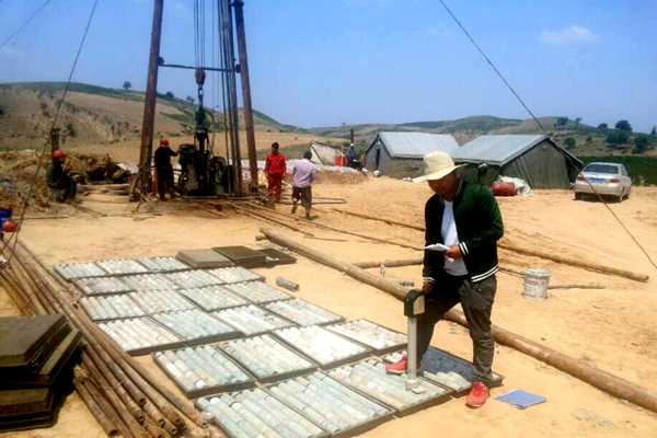 陜北趙石畔--胡家溝勘查區位于榆橫礦區(南區)東南部,隸屬橫山縣趙石畔鎮、塔灣鎮管轄,總面積約257km2。項目地質工作由該院地調所煤項目部負責,鉆探工作由該院地質工程公司承擔。去年3月中旬即開始布孔、修路等前期工作,至9月底完成全部野外工作。共投入4臺鉆機,終孔26個,進尺8500m,完成了26個鉆孔的物探測井任務,完成1:25000四項地質填圖257km2,采取各類樣品208件。按照詳查設計書的要求,保質保量全面完成了各項外業生產任務。