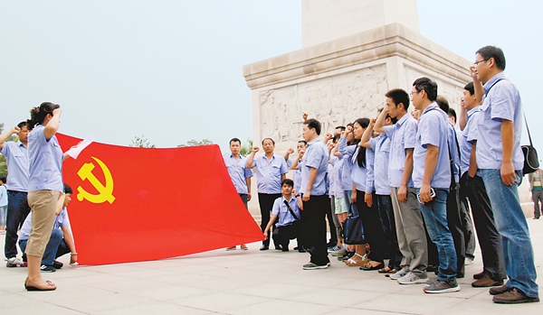 全體黨員在紀(jì)念館廣場的英雄紀(jì)念碑前,面向黨旗,重溫入黨誓詞。黨員們懷著崇敬的心情參觀了陜甘邊照金革命根據(jù)地紀(jì)念館,親眼見證這段極不平凡的歲月,黨員學(xué)習(xí)后受到了一次心靈的震撼和靈魂的升華。在革命根據(jù)地舊址薛家寨,大家一起走革命先烈走過的陡峭山路,體會先烈們不畏艱辛、奮勇抗?fàn)幍母锩瘢邮芩麄兤D苦作戰(zhàn)、艱苦奮斗的革命優(yōu)良傳統(tǒng)教育。