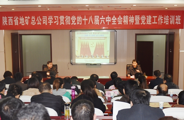 11月25日,地礦總公司學習貫徹黨的十八屆六中全會精神暨黨建工作培訓班在地礦職培中心舉辦。陜西省委黨校王誠安教授為學員宣講,總公司黨委書記、董事長趙廷周主持并講話,總公司領導劉建勤、艾亞雄、齊文、張軍、潘發明、馬貴鎖、何淑萍出席。