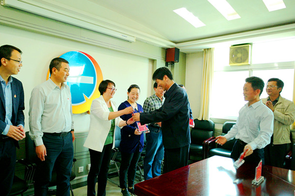 安增會介紹了設立“黨員先鋒崗”的有關情況。機關黨委副書記宣讀了《關于授予李崇勇等同志機關“黨員先鋒崗”的通知》。趙廷周為李崇勇、李順亭、劉葭、李小瑛、李衛華、范樂偉、韓濤等7名被授予“黨員先鋒崗”的同志授牌。