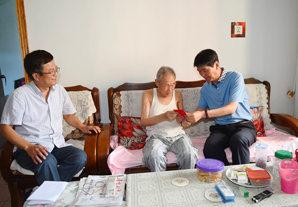 趙廷周一行先后來到居住在總部大院同一棟樓的80多歲高齡的老黨員曹如意、謝吉林家中,關切地詢問老人的身體健康狀況和生活情況,了解子女的工作情況,向他們介紹了集團公司七一組織黨員接受紅色教育活動情況,同時叮囑老人保重身體、安享晚年,并為兩位老人送上了慰問金。