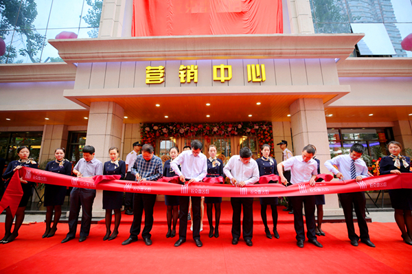 10時(shí)35分,出席儀式的各位領(lǐng)導(dǎo)為營(yíng)銷(xiāo)中心開(kāi)放剪彩。