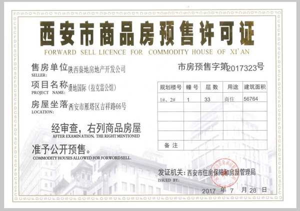 拉克雷公館獲商品房預售許可證