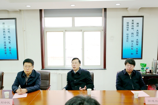 魏增軍詳細了解了地礦集團公司系統2017年的發展情況,對地礦集團公司積極實施轉型升級三大戰略,全力打造三個地礦給予充分肯定。魏增軍強調,一是要在繼續發揮好基礎性、公益性、戰略性地質服務作用的同時,堅定信心,提振精神,沿著企業化的路子持續走下去。二是要堅持綠色發展理念,保護好我們的綠水青山。在傳統地質項目減少的情況下,積極謀求轉型發展,向新能源和民生地質轉型。三是在發展思路上,既要有長期項目,又要有短平快項目,要長短結合,保證企業發展的平衡性和穩定性。四是要保持地礦隊伍的和諧穩定。人心是決定一切的因素。要讓大家都有活干,都有飯吃,把干部員工的人心凝聚起來,增強隊伍的向心力和戰斗力。魏增軍向物化探隊送去了慰問金,也送去了省委省政府的親切關懷。希望物化探隊在新的一年里,工作有新的起色和更大進步。