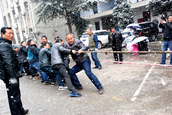 漢中地質大隊一年一度的冬季職工運動會于1月19日拉開帷幕,在漢中隊隊部和頤康源運動休閑中心分別舉行了拔河比賽和籃球比賽。場上,運動員團結協作、頑強拼搏、勇爭第一的運動精神和強烈的集體榮譽感感染了在場的每一個人;場下,觀眾們冒著大雪,不畏嚴寒吶喊助威,掌聲、歡呼聲此起彼伏,一浪高過一浪。賽場內外始終洋溢著團結、拼搏、競爭的良好氛圍。比賽賽出了友誼、賽出了風格、賽出了水平,圓滿實現了運動成績與精神文明雙豐收,生動踐行了“凝心聚力、攻堅克難”的凝聚力、向心力、戰斗力,充分展示了漢中地質大隊全體職工良好的精神風貌。