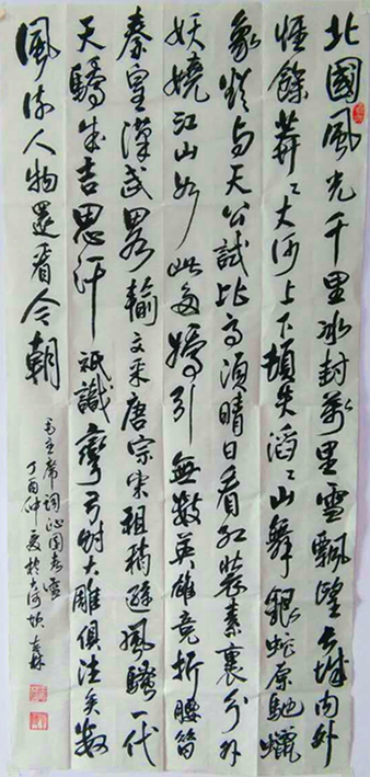 學書體會:我在中學時期就比較愛練字,加之野外工作業(yè)余生活比較枯燥無聊,空閑時別人喜歡打麻將,閑逛,因為我性格較內向,不善于吹牛和閑諞,于是就找來字帖練字。最開始練的是柳體玄秘塔碑。1985年我報名參加了長安書法函授學校笫一期初級班書法函授學習,兩年后又參加了書法提高班的函授學習,至今已三十多年矣。