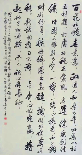西安市長安文化研究會副會長閻靖元先生曾作《李二幸書美初賞》詩,贊曰:“剛如鐵石柔如水,芳若雅蘭艷若梅。旁逸斜出不失矩,縱橫捭闔總有規。妙筆走龍錐奇景,硯田墨海起風雷。長安書林藏宿將,偶得齋主書象美。”