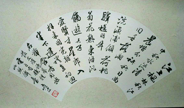 余自幼好書,描紅時即得圈較多。小學五年級時得顏真卿《多寶塔碑》,照貓畫虎,收益匪淺。初中畢業后回農村,辦板報、畫壁報,在仿宋、黑體等美術字上下了一番功夫。因學業不錯,寫字較好,還懂得一點二胡、笛子之類的東西,被選中當了民辦教師。學生放學以后,即在教室(村北一古廟上殿)地面的方磚上用毛筆蘸水畫字。那時報上書上,街頭標語,門面匾額,但見好字,如見珍寶,常常忘卻正事,駐足凝神,心追手摹。曾與人合作為同鄉幾個村設計策劃舉辦了今昔比較的教育展覽,還常被公社請去寫獎狀、刷標語。到機關工作后,對書法的興趣從未稍減,收入雖薄,但見好帖、好書卻毫不吝惜以購之。有空即習,長期未輟。