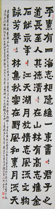 謝西寧那厚重而不失靈動的“二爨體”楷篆作品,收放自如、行云流水一般的行草書作品,是一大特色,顯示出很高的書法功力。他的老友胡紅拴先生曾贈詩一首,較好地概括了謝西寧的人品和書法。詩曰: